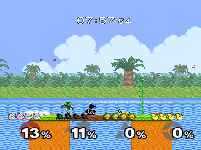 - Pressing L+R+A+Start during stage load goes back to character select screen instead of the main menu.