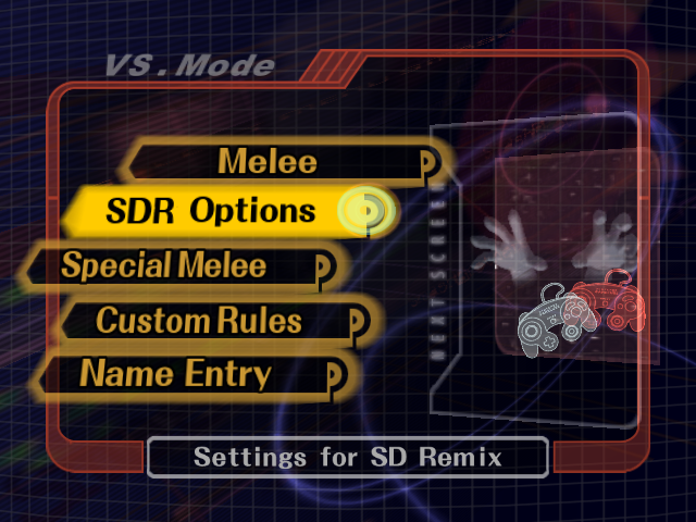 - Changed “Tournament Mode” to “SDR Options” and “A tournament for 64 players” to “Settings for SD Remix”