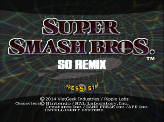 - Character select screen has different coloration and “MELEE” on top left changed to “SD REMIX”