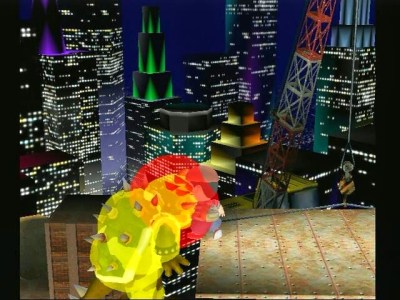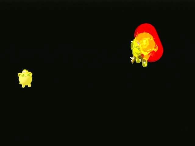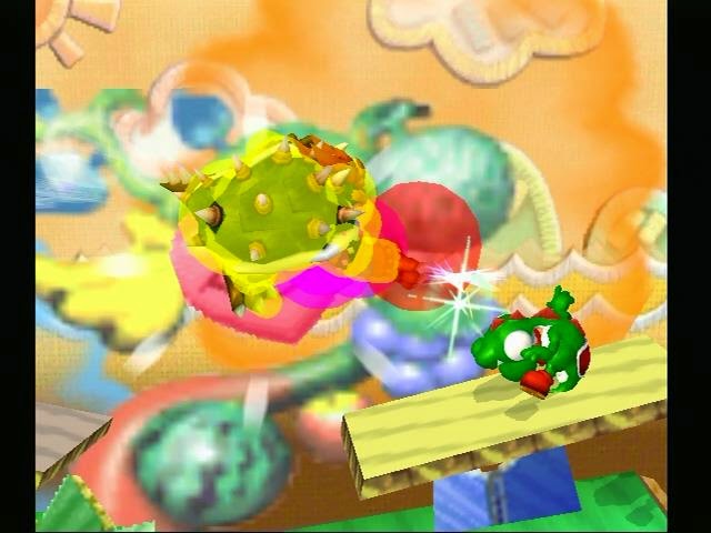 We’ve replaced a falling anvil with Bowser to see if there is a discernible effect on Yoshi’s reaction. Negative. But you, the player, certainly want to know how the move works, so here’s an image of the hitboxes.