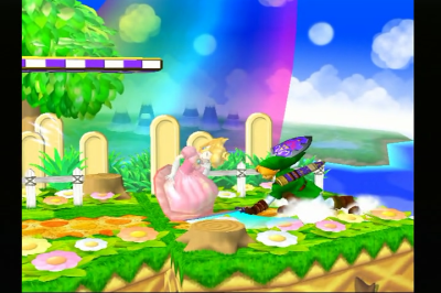 Like other tether characters in SD Remix, Link’s Hookshot can reel in airborne foes.